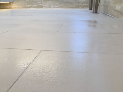 The first part of the anti slip equation is our coating process. This is a very durable coating that is applied to the surface. In scenarios that include grout, this coating process serves a dual role: preserving the surface of the tile while also preserving the grout. This coating process forms a clear, hard barrier to make the surface easy to maintain, as well as preserving the integrity of the tile.