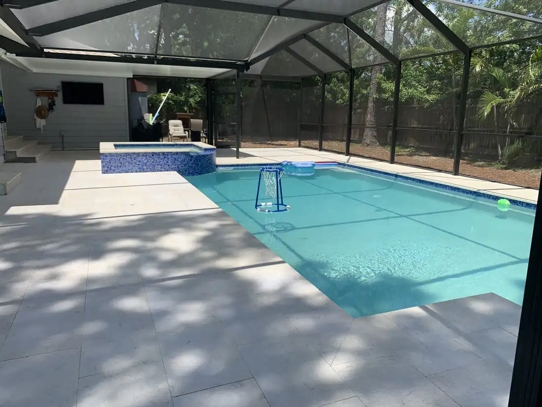We provide DURABLE Non-Slip Applications for Travertine Pool Decks, Marble Decks, and Stamped Concrete. We utilize our Durable 3-Part Coating Process, which usually lasts 3 – 5 times longer than using a common Travertine Sealer. We combine our NS-200 COATING with Nano Non Slip Beads for the Most Durable non-slip application in the US, including the Tampa, Florida area.