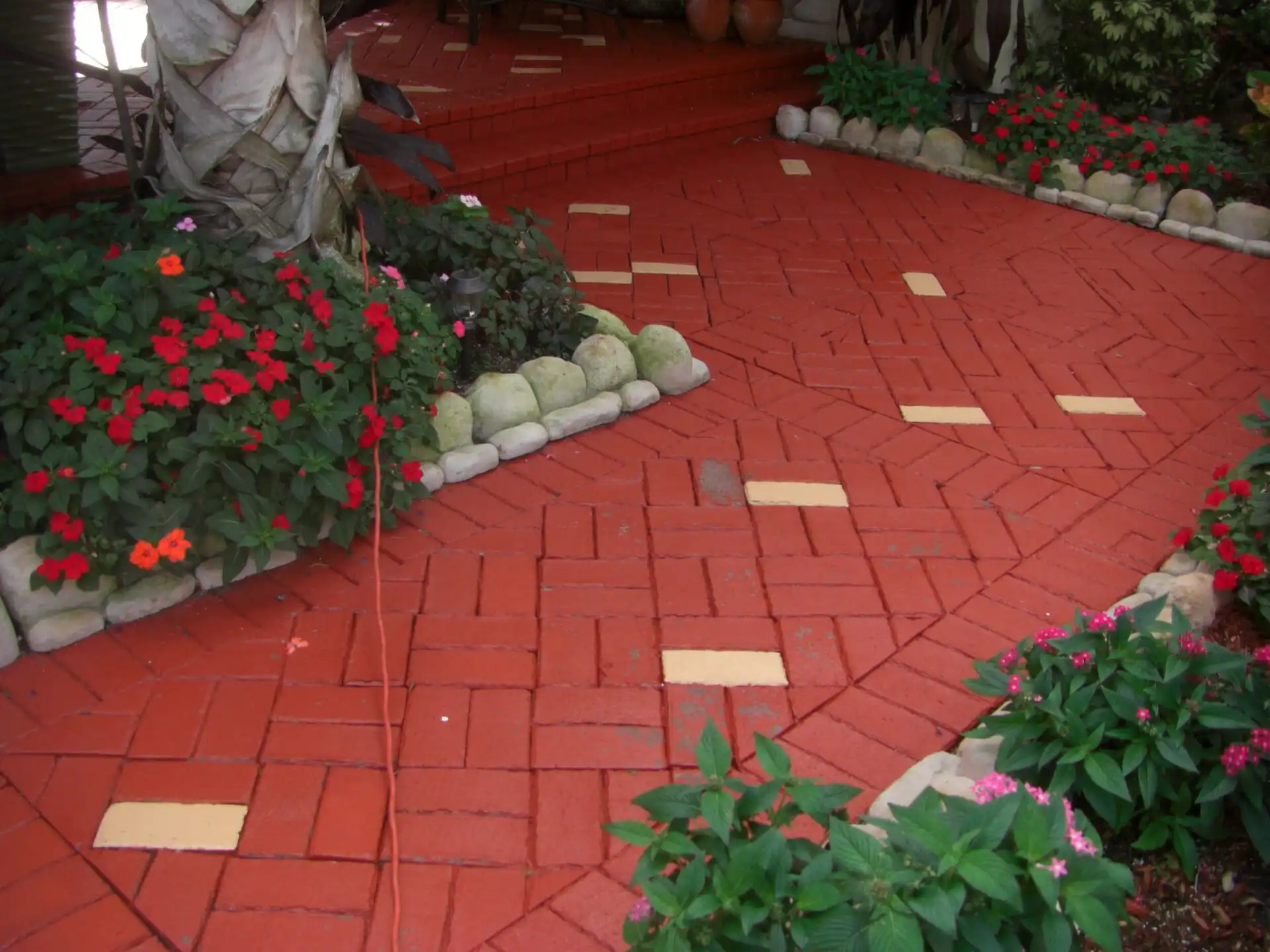 After the painted surface was removed, we then sealed the pavers. This resulted in the beautiful pavers being exposed and protected.